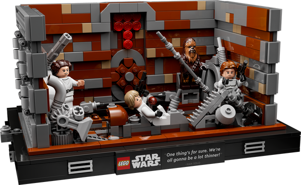 Begin a creative mission to recreate a legendary Star Wars: A New Hope scene with this Death Star Trash Compactor Diorama (75339) set. It is packed with authentic details, including moving walls and a dianoga’s head. Place Luke Skywalker and Han Solo (both dressed as Stormtroopers), Princess Leia and Chewbacca inside Garbage Compactor 3263827, and C-3PO and R2-D2 at the compactor’s controls trying to switch it off. Attach the plaque with Han Solo’s dry quip (‘‘One thing's for sure. We’re all gonna be a lot thinner.”) to complete a nostalgic display piece.
